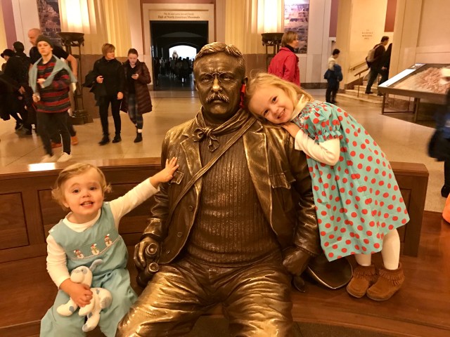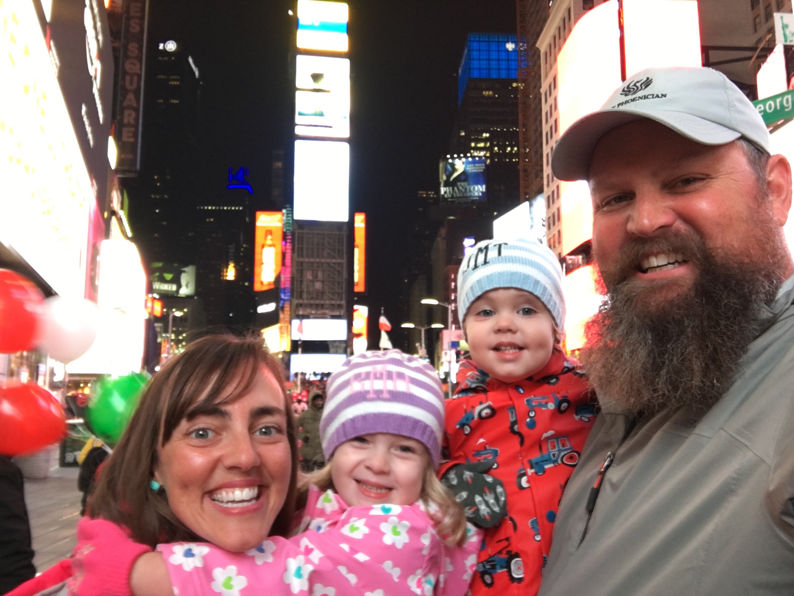 Thursday’s adventures started at breakfast with Cory again before heading back to the American Natural History Museum. We had a big time seeing all the (stuffed) animals, a huge blue whale (Bea’s favorite), giant squid, walrus, polar bear (Teddy’s favorite), dinosaurs and Teddy Roosevelt. It’s a huge Museum that we couldn’t possibly see in a morning. We tried to take the Subway home but Google showed two trains (on my phone) come and go but no actual train, we left. I had had enough and Teddy was melting. It was so bad that someone else helped me carry the stroller while I wrangled Teddy. Yellow taxi for the save! For supper, we took the Subway (with all the daily commuters and was it ever packed) to Mighty Quinn’s BBQ (seen on Burgers, Brew and Que). It didn’t disappoint with delicious brisket, ribs, mac and cheese and baked beans. On our way home Teddy finally got to ride the subway not in the stroller! 😉
