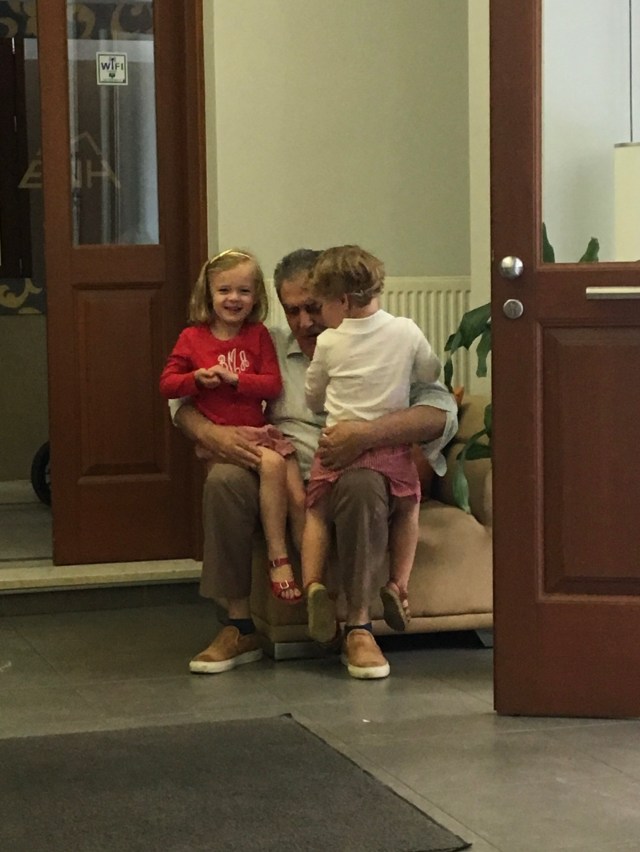 We are loving Greece even more so because Greek people love kids! After breakfast, Teddy asked where was his friend (aka Me. George). As it turns out, he had gone to buy each of them a little toy! The receptionist gave it to them when we came in that afternoon and of course the kids loved it! Unfortunately, we didn’t see him again but what a sweet man. He surely made us all feel at home!
