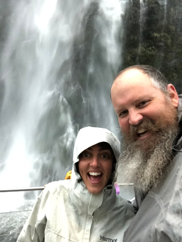 Saturday morning we were up at 5:30am (which is way earlier than the 8am we’ve been getting up on this vacation). Sweet Cory fixed us breakfast, as he always likes everyone to be well fed, before our 6:30am cab ride. Today’s adventure with Real Journeys took us on three buses and two boats. We had seven people (low numbers in the off-season) on a coach bus that took us to Manapouri. However, we wouldn’t be in NZ if they didn’t stop for coffee on the way which consequently had a playground for the kids ten minutes of wiggles out. Why not, right! Once in Manapouri, we took our first boat ride in a relaxing catamaran on Lake Manapouri to our second bus which was a 20 km scenic ride full of vegetation (many beech trees and moss) and the beginning of all the waterfalls. The main event was a three hour boat ride (yes, we did make it back!) touring Doubtful Sound. It’s been a warm winter so far in NZ as it was only 8 degrees Celsius instead of typical negative temperatures. Doubtful Sound is a cove of water ways viewing one amazing waterfall after another amazing water. It started raining (actually storming) on us which normally would’ve been a bummer, but the rain emphasized the hundreds of waterfalls we saw! Crazy wind made the waterfalls even cooler as some of the water from the falls don’t hit the lake before being swept back north. Wild! The boat captain got us up so close to some of the waterfalls that we could almost touch the water. I have never seen anything like it! The kids loved being so close, standing in the rain and wind.