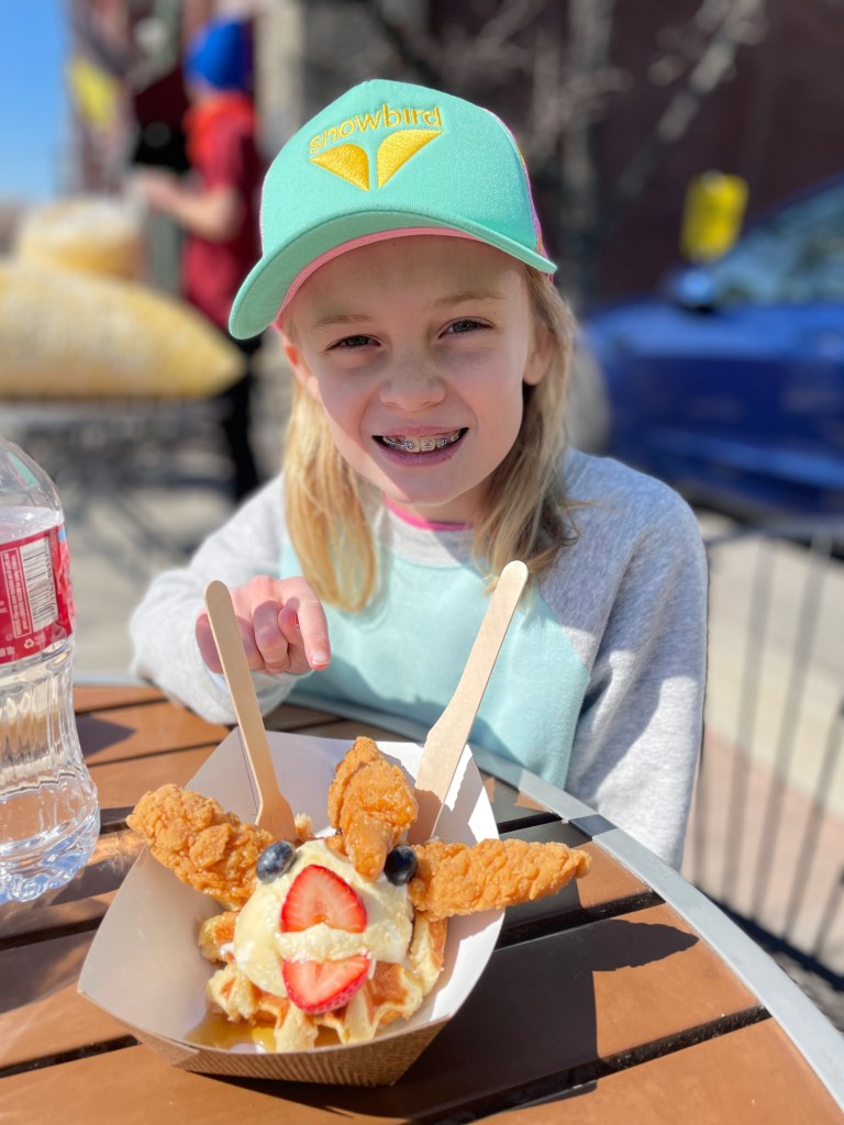 Bruges Belgium Bistro– Waffles plus sausage and eggs equal a super yummy lunch! You can also get sweet waffles that looked equally as delicious. They have two locations…one downtown where you eat outside and one in Sugar House which is a neighborhood on the south side of SLC.