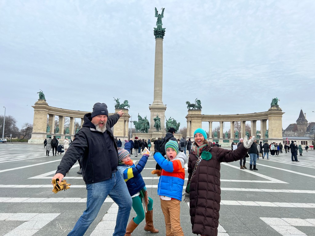 If you have followed us, you know we love zoos. So we checked out the Budapest Zoo and had it mostly to ourselves since it was so cold. We don’t mind the cold! We saw a new animal we’d never heard of or seen before, a dhoule. We made friends with a sweet, shivering squirrel monkey who came over to see us even though he was clearly very cold! We saw Bea’s favorite animal the red panda and Teddy’s favorite, from the day, was the sugar glider. Right beside the zoo, you find Hero’s Square with lots of statues of kings and heroes from 997 to 1300s. Their history goes back so far!